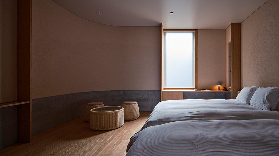 - 本物件は、植栽の緑がアクセントを添える、フォトジェニックな外観となっています。建物内には外周の大きな開口部から植栽越しに自然光が差し込み、鎌倉駅至近のホテルであることを忘れさせる非日常の空間を演出します。無垢で上質な素材で質感にこだわった空間を演出する客室は全36室で構成されており、セミダブルが4室、ダブルが10室、ツインが22室の構成となっています。1階ではフロント・カフェ・ラウンジが一体となっており、街と庭、室内が連続するような空間体験を形成しています。